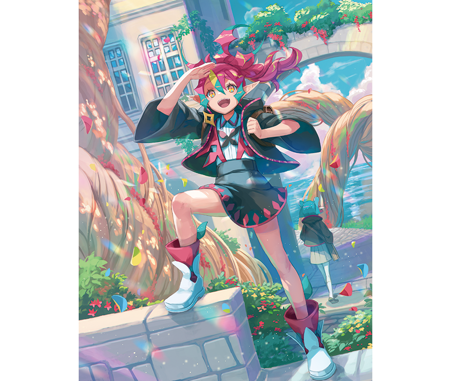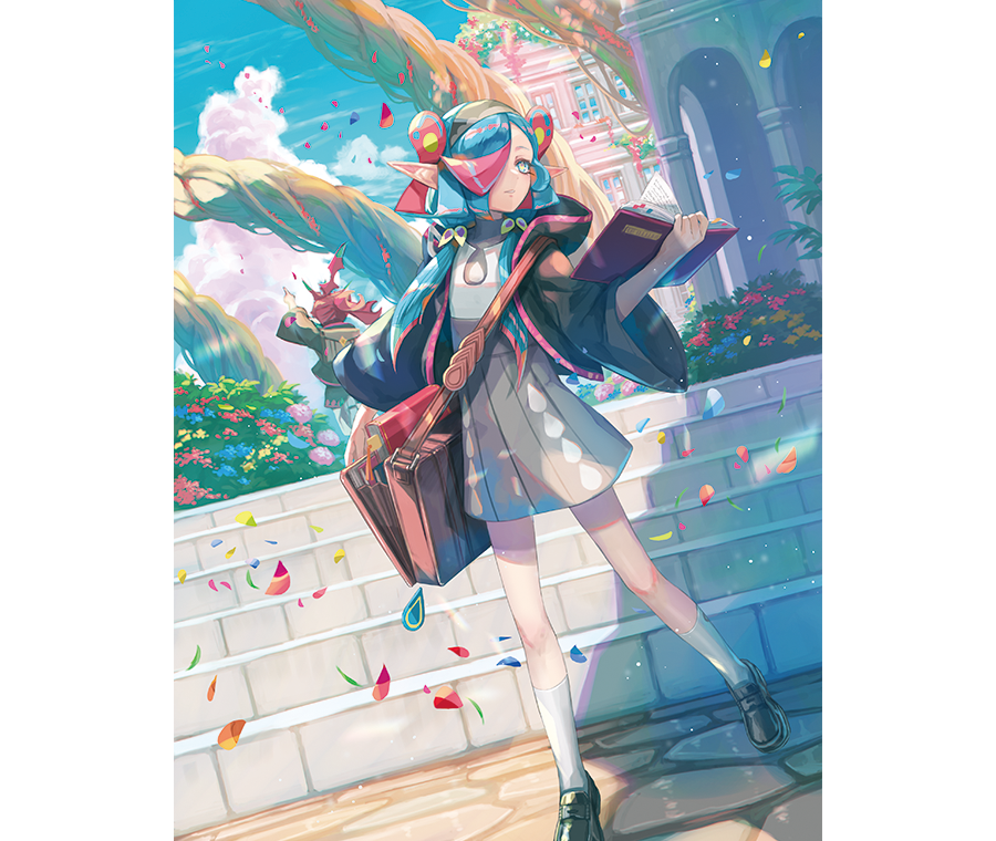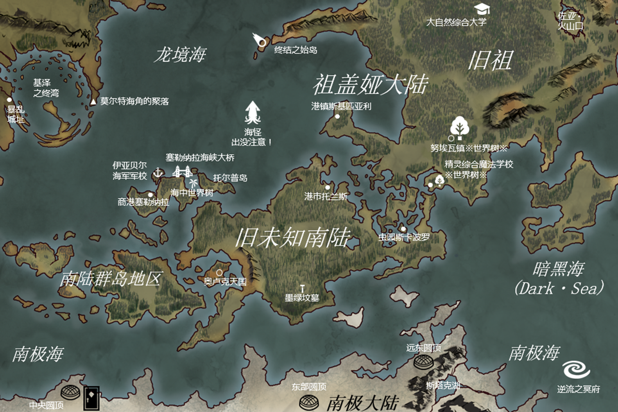 宏伟的教学楼建在平静的群岛海边,宽敞的校园里到处生长着植物,一棵巨大的世界树耸立在前方的山峰上。身着制服的学生从这里经过,教授们神情威严而平静。