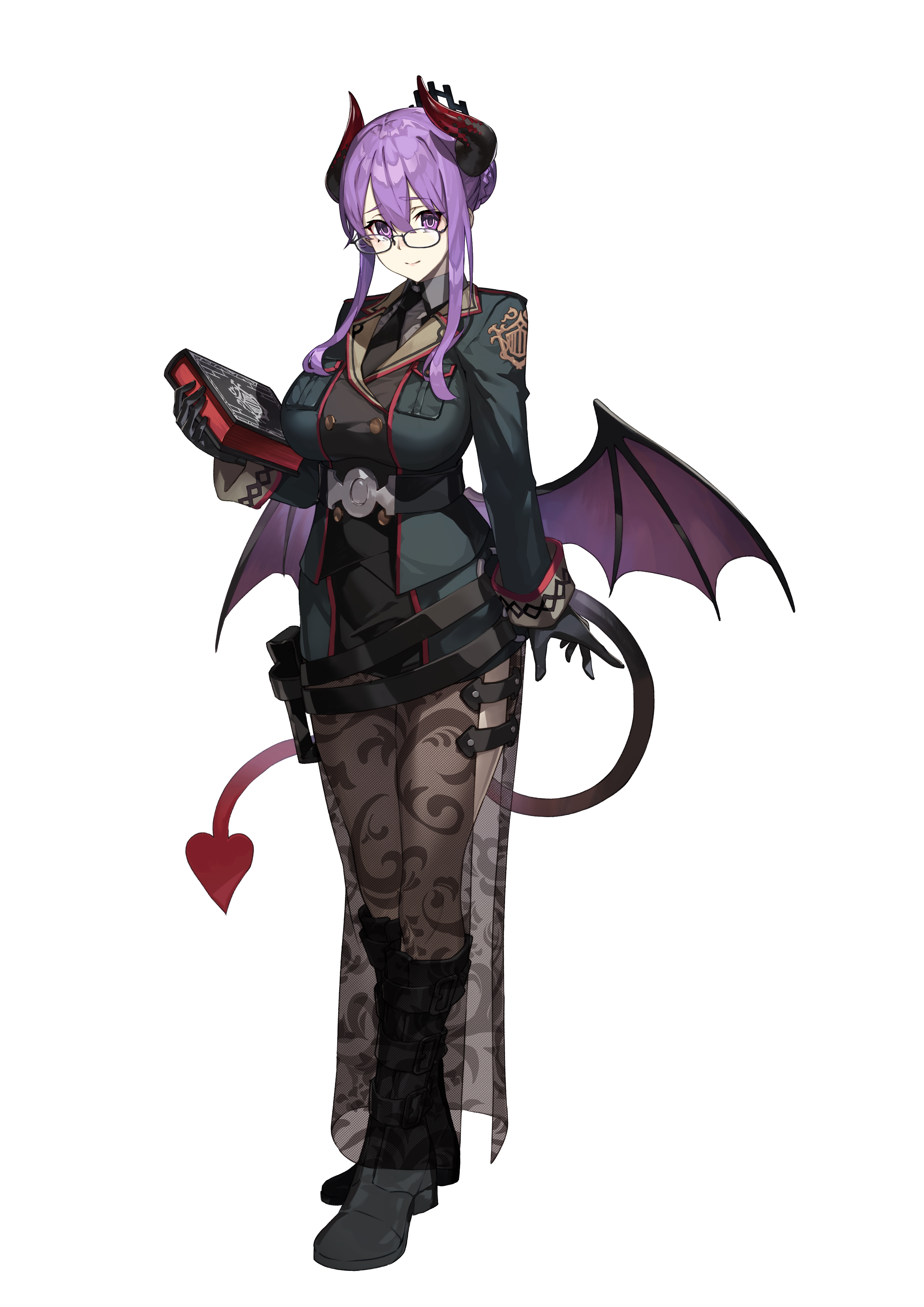 瘴气一样的紫色头发,同样的紫色眼睛。脸的轮廓和五官还算端正,但不自信的表情和土气的眼镜让她显得颇为缺乏气场。
