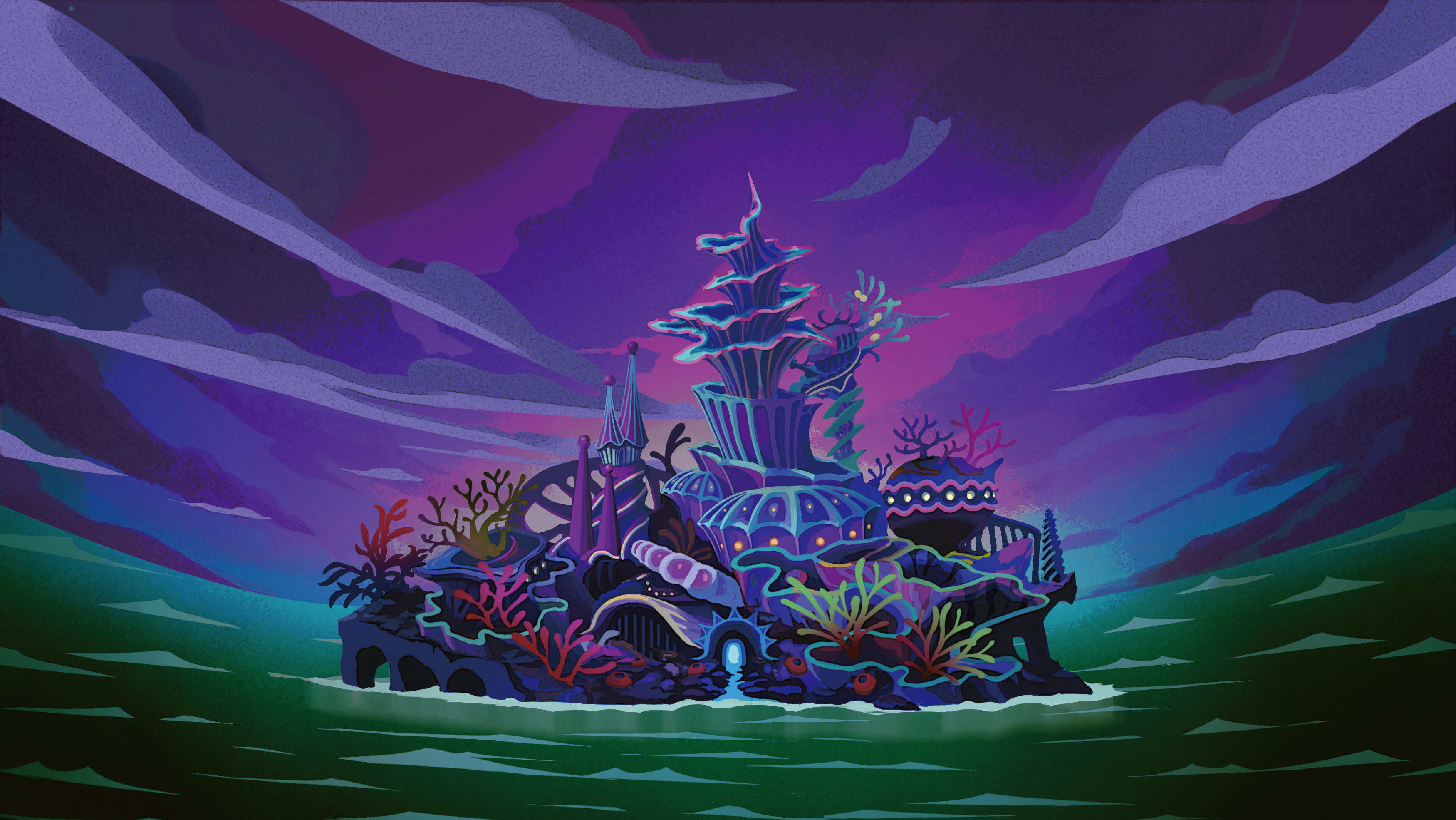 它看起来不像个岛屿,而像一个奇怪的巨型物体——扭曲的柱子?枯朽的建筑物?弯曲的树枝?零碎的部分从一个地方向另一个地方伸出扭曲,形成一座单一的岛屿。