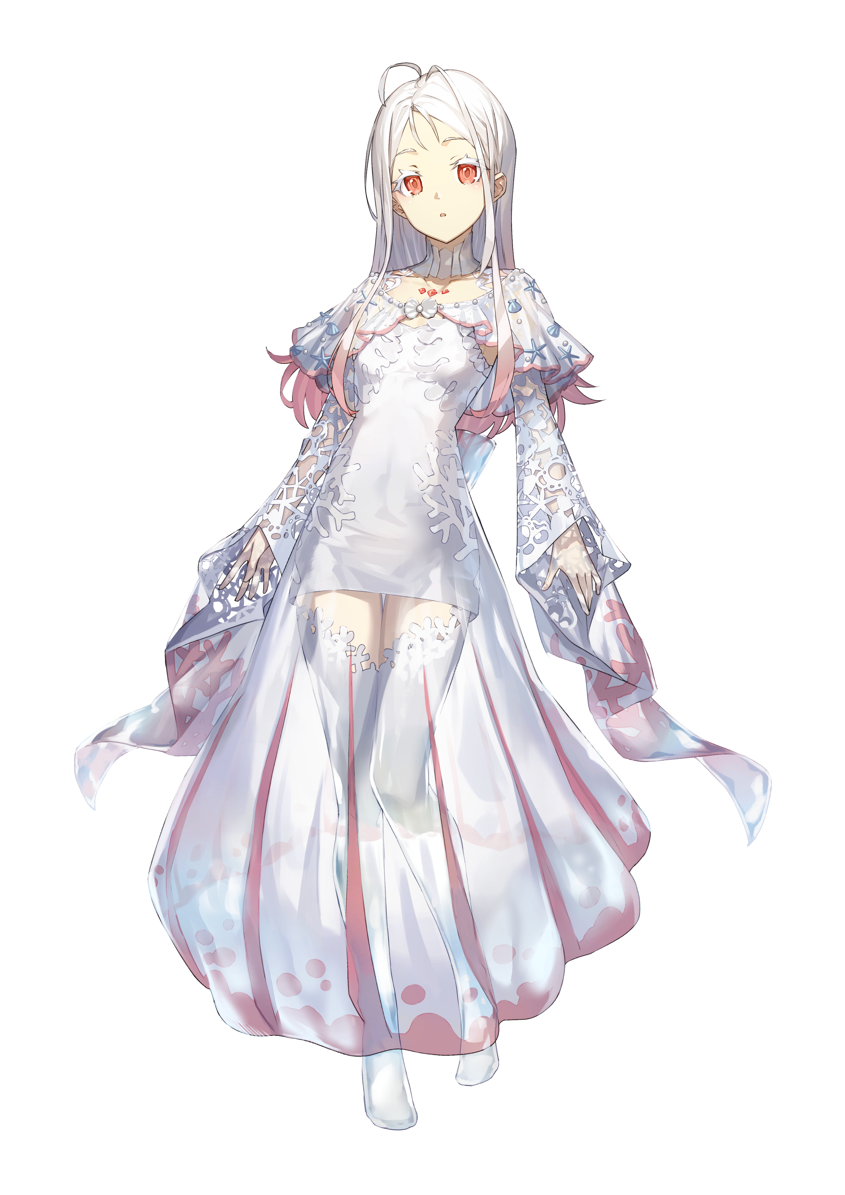 她的头发是白色的,皮肤像月光石一样微微透亮。