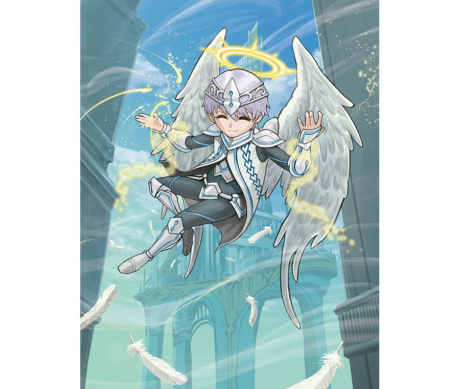 指着前方的天使少年向并肩飞行的奇迹之命运者 雷扎耶尔和幻真兽 利菲斯托尔解释道,脸上的笑容无可挑剔。